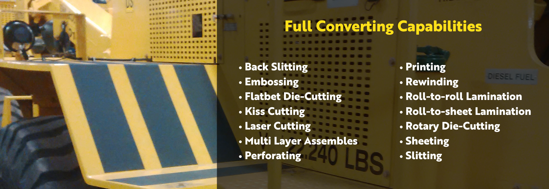 We offer a start to finish custom converting system, which includes flatbed and rotary die-cutting, slitting and back slitting, kiss and laser cutting, sheeting, rewinding, perforating and kitting.